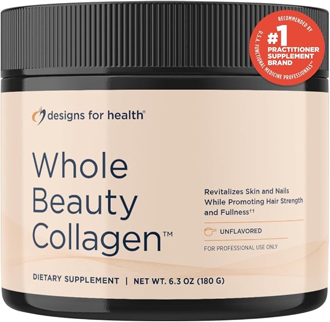 Designs for Health Whole Beauty Collagen - Collagen Peptides, Silica & Biotin Powder to Support Hair Skin and Nails - Support Hair Strength & Fullness (30 Servings)