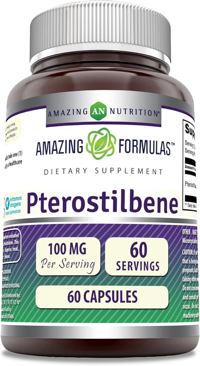 Amazing Formulas Pterostilbene Supplement | 100 Mg per Serving | 60 Capsules | Non-GMO | Gluten Free | Made in USA