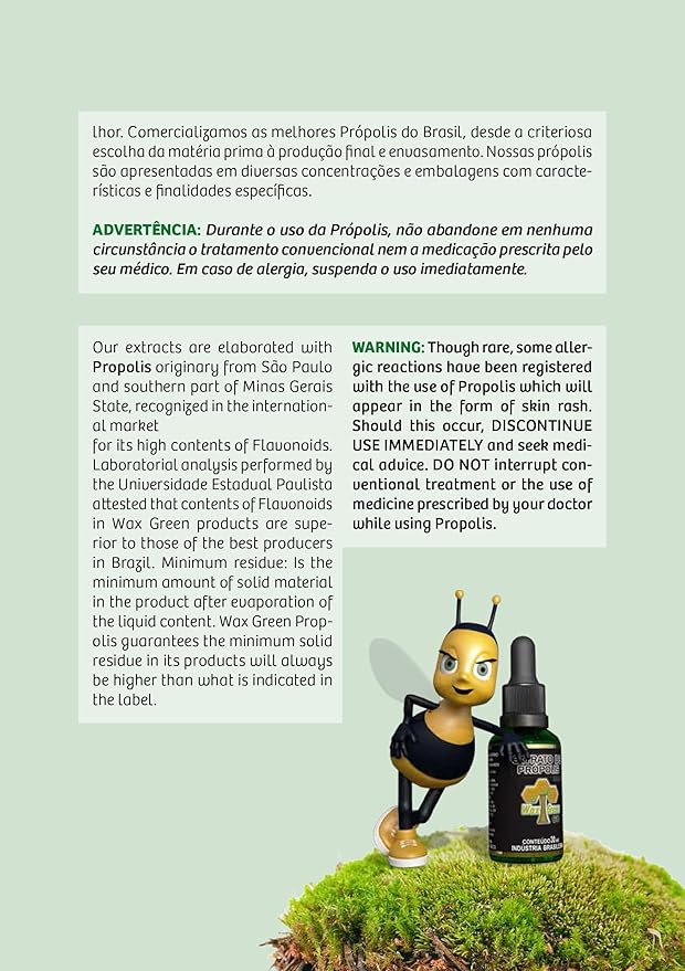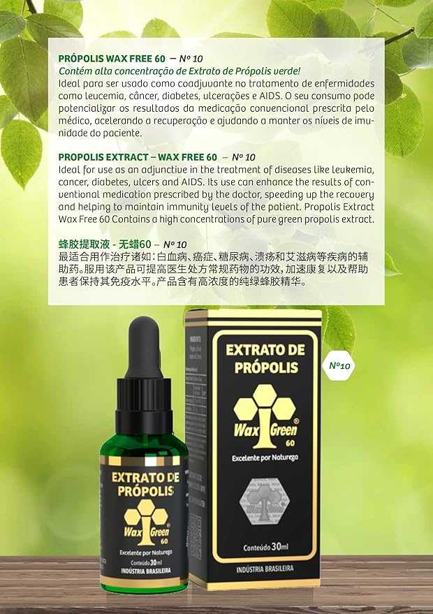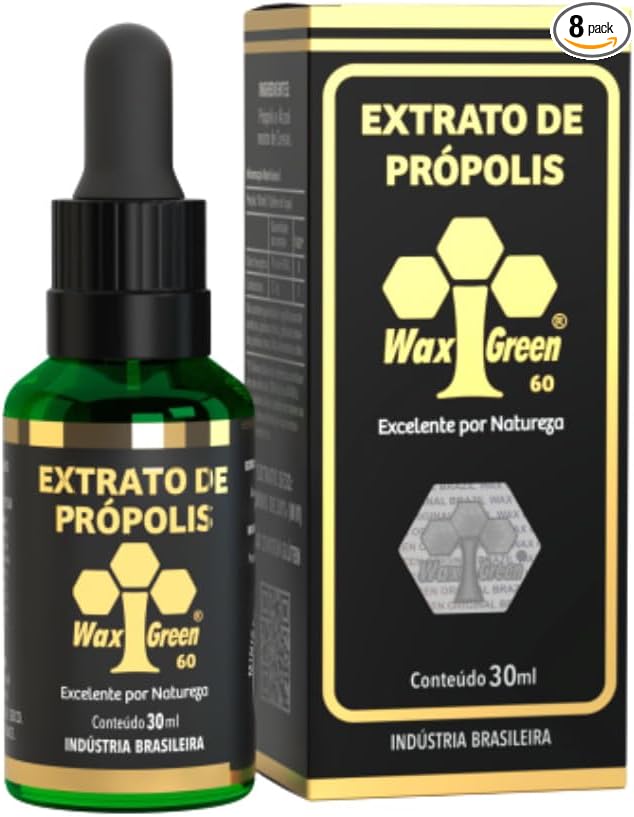 1 Box of 8 Bottles Wax Green Propolis Extract Brazilian N10 60% Wax Free Liquid (30ml / 1 fl oz)