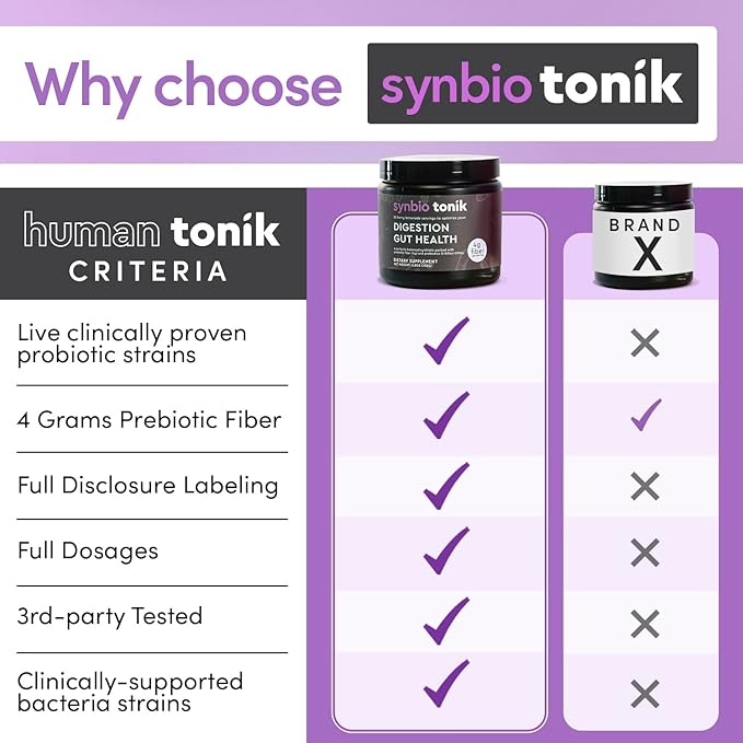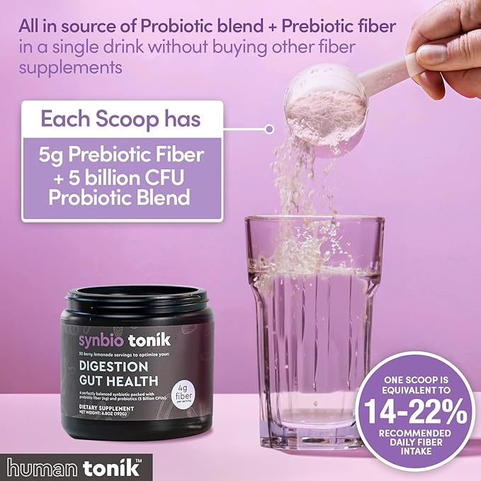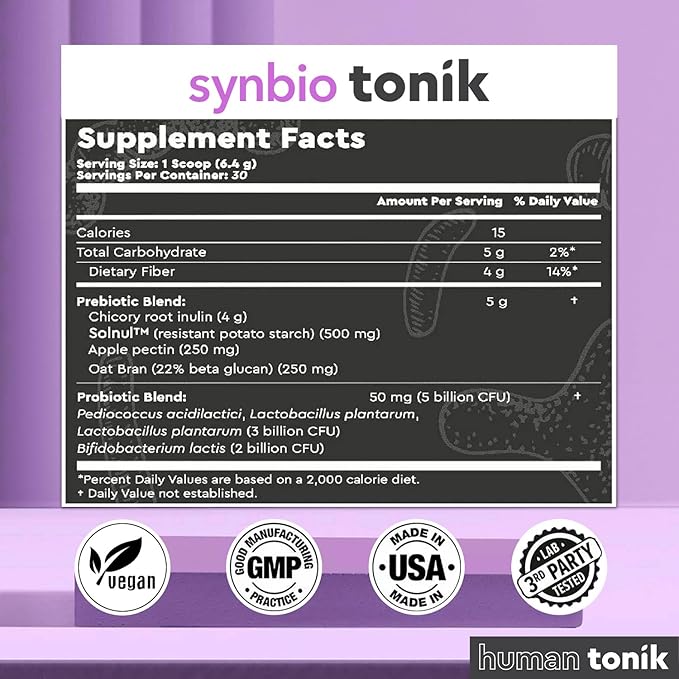 - IMPROVED DIGESTION - Experience less bloating and have more energy throughout the day. Synbio Tonik aids food breakdown & improves nutrient absorption which creates a healthier gut microbiome that provides a significant improvement in your mental well being. With 5 grams of prebiotic fiber per scoop, Synbio Tonik keeps you healthy and satiated long term.