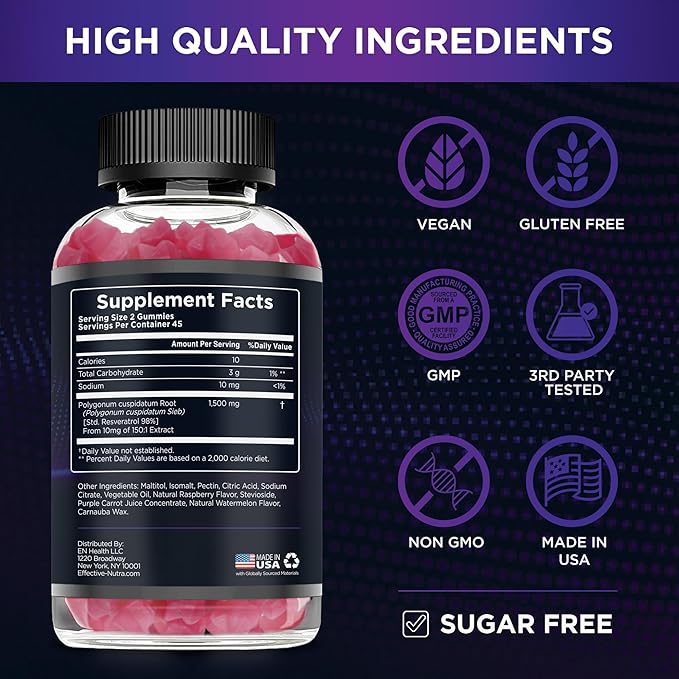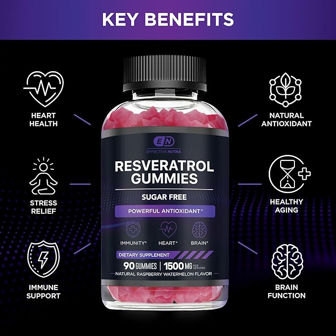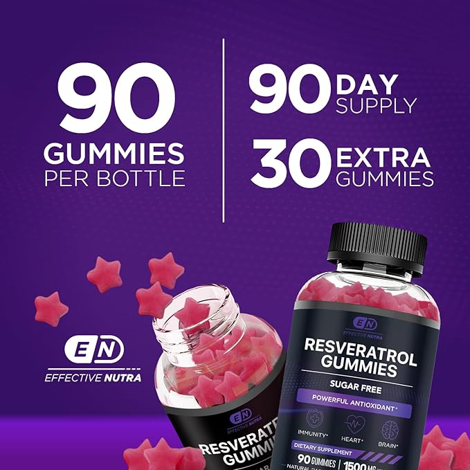 - #1 RESVERATROL GUMMY: Our sugar free Resveratrol gummies taste great & go down easy. Each serving is packed with 1500mg. 90 Gummies in a bottle for the best value out there!*