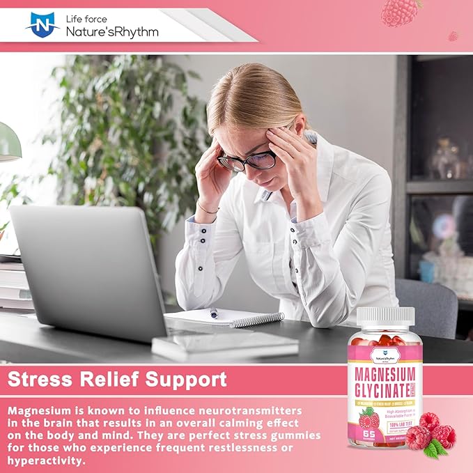 - 【Delicious Raspberry Flavor】Our Magnesium Glycinate Gummies are easy to chew, have a pleasant taste, can be swallowed anytime without water or food, are quickly absorbed by the digestive system and are gentle on the stomach.