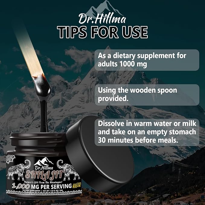 - Himalayan Gilgit Mountain: 100% pure organi gold: Dr.Hillma shilajit resin sourced from the untouched heights(altitude of 14,000-18,000 feets) of the HIMALAYAN GILGIT BALTISTAN MOUNTAIN. Our shilajit is purified at low temperatures using only spring water. That will retain the original minerals and nutritional value of Shilajit to the greatest extent. Enjoy Shilajit contains a comprehensive blend of nature's finest ingredients without any added chemicals.
