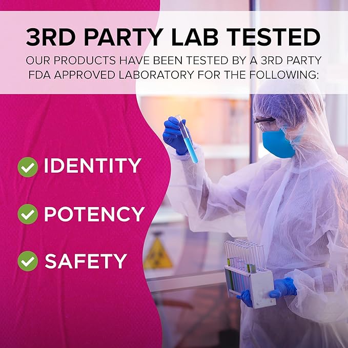 - ⭐ QUALITY ASSURED - Our products are 3rd Party Tested for Quality and Purity by the Worlds Leading Testing Facility. Our Manufacturing Team Work to GMP Standards to give you Peace of Mind. This Product is Vegan Friendly and Gluten Free. Each Batch is Quality Checked Before Manufacturing Begins