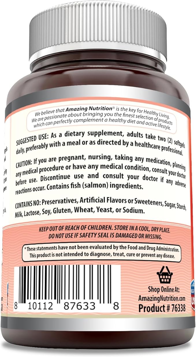 Amazing Omega Wild Alaskan Salmon Oil 2000mg Per Serving Softgels Supplement (90)