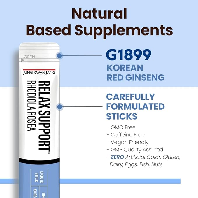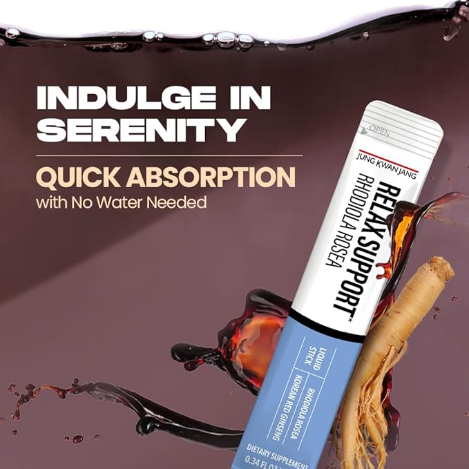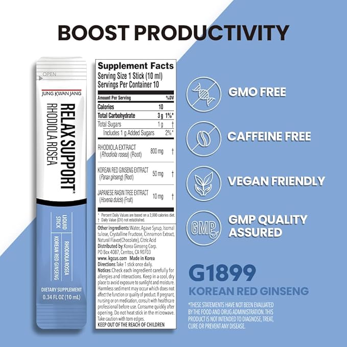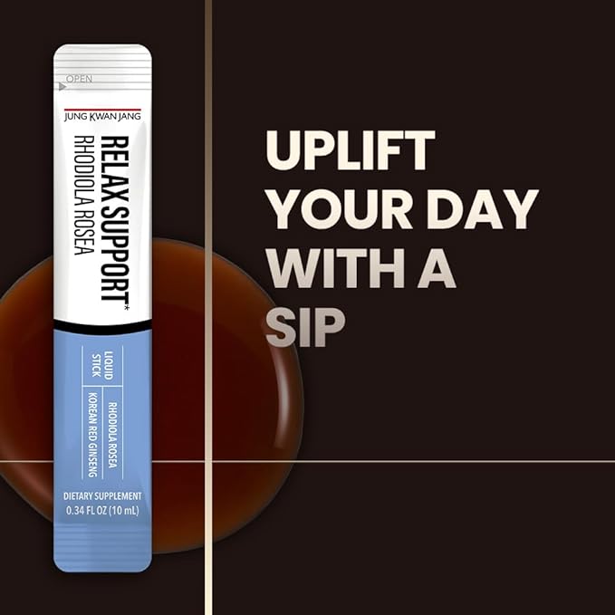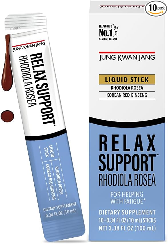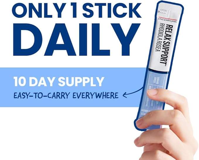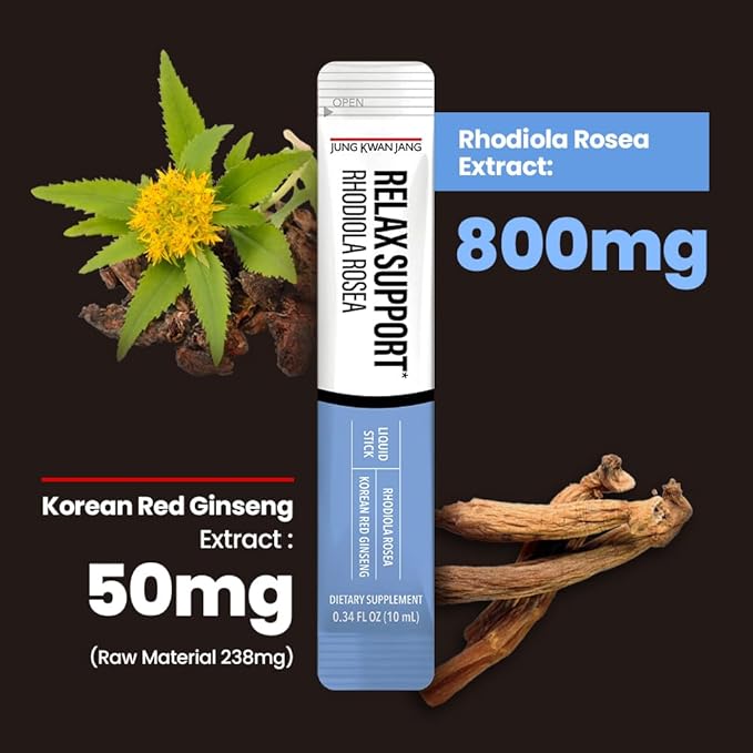 JungKwanJang Relax Support Rhodiola Rosea (800mg), Korean Red Ginseng Everytime Extract Sticks, Relaxation Supplement for Calm and Clarity, 10 Count