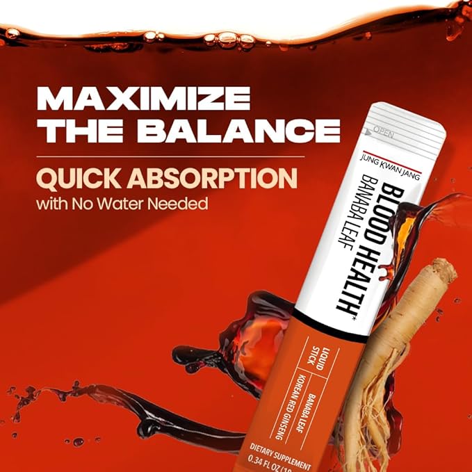 JungKwanJang Blood Health Banaba Leaf Extract (100mg), Carob Pods, Korean Red Ginseng Everytime Extract Sticks for Circulation, Post Meal, Energy, 10 Count