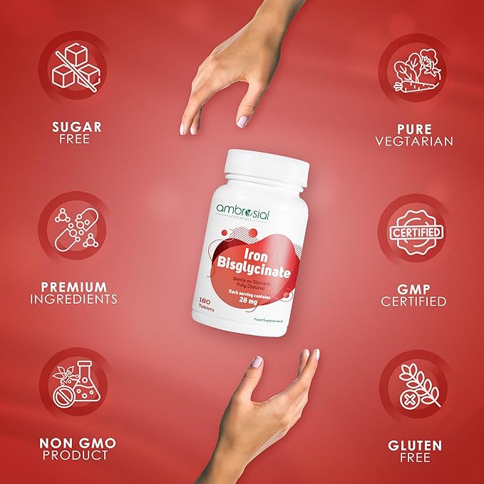 Ambrosial Iron Bisglycinate 28Mg Tablets Pack of 1-180 Tablets