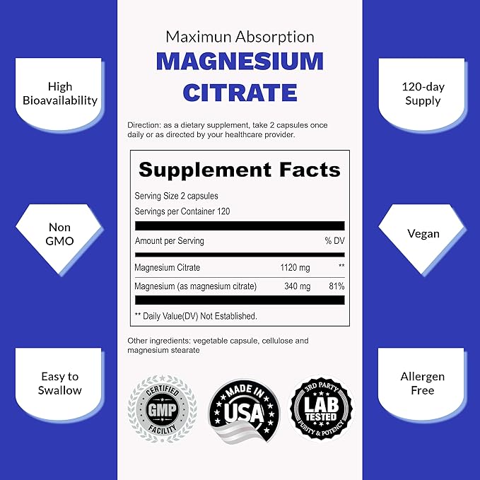 - High AbsorptionMagnesium:Feature citrate magnesiumthat is highly absorble