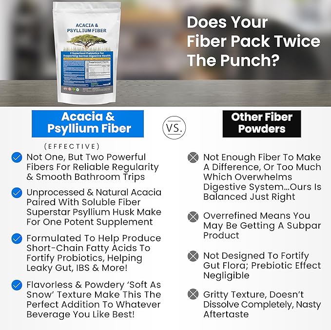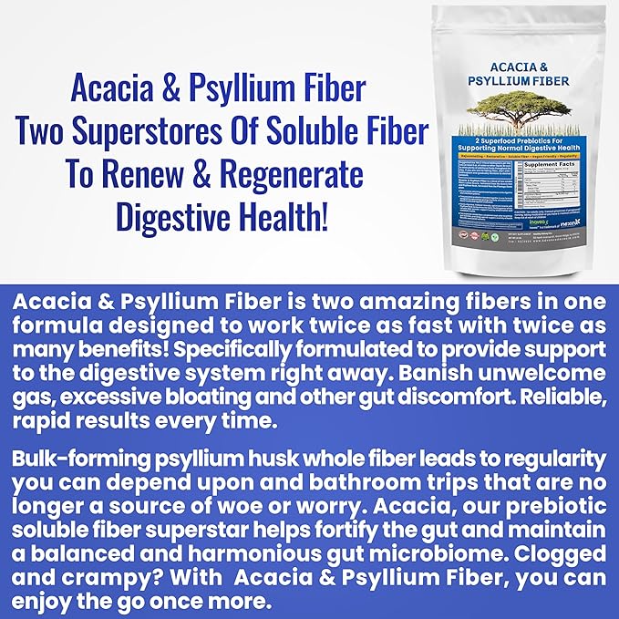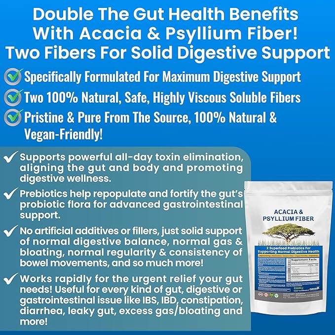 - ๐๐ข๐จ๐๐๐ ๐ง๐๐ ๐๐๐๐๐ฆ๐ง๐๐ฉ๐ ๐ฅ๐๐๐จ๐ฉ๐๐ก๐๐ง๐๐ข๐ก: Two ancient gut restoring remedies together. The powders of Organic Psyllium Husk powder and Acacia Fiber support normal toxin elimination, regularity, optimizing bowel health, and promoting gut wellness. sweeping and keeping the colon, digestive system and GI tract clean & clear. Take pleasure in twice as much soluble acacia and Psyllium Fiber powder for quick results you can feel right away.