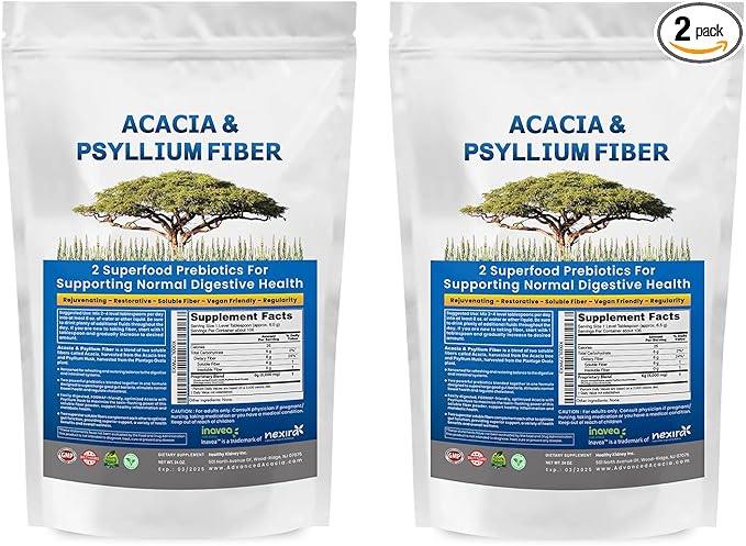 - ๐ฅ๐๐ฉ๐๐ง๐๐๐๐ญ๐ ๐ฌ๐ข๐จ๐ฅ ๐๐จ๐ง: This two-pack combination of organic Acacia and Psyllium Husk Fiber supports normal digestion, encourages the growth of prebiotics, supports normal inflammation & overall gut repair. Use this flavorless, easy to mix Organic Acacia & Psyllium Husk powder natural fiber to support normal gas, bloating, regularity & digestive wellness! Say goodbye to poor digestive health. Quickly restore good bacteria & support good bowel health and add more fiber in your diet.