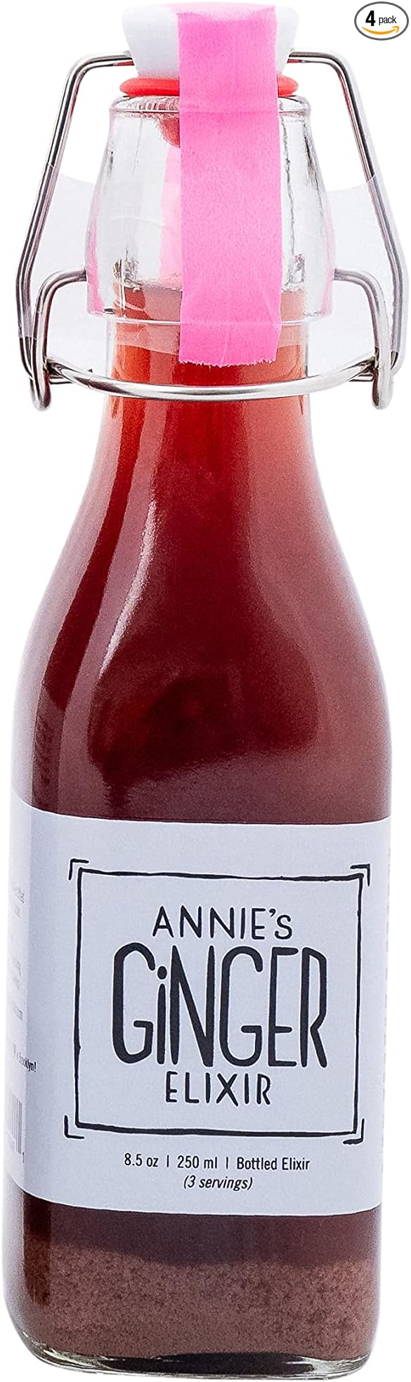 Annie's Ginger Elixir, 8.5oz 4-Pack, Pure Natural Organic Ginger Shot, Digestive Cleanse Tonic Boosts Immune Defense, Daily Gut Health and Wellness, Non-GMO Beverage