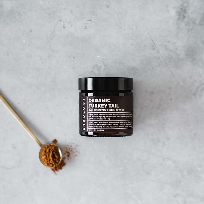 Erbology Organic Turkey Tail Dual Extract Powder 30 Servings - Prebiotic and Gut Nourishing - Trametes Versicolor - Sustainably Grown in Europe - Vegan - Non-GMO - No Added Fillers