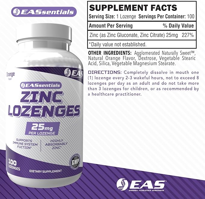 - Enhanced Absorption & Recovery - EAS Zinc features Zinc Gluconate and Zinc Citrate with zero additives for improved zinc release, fast absorption, and better bioavailability.