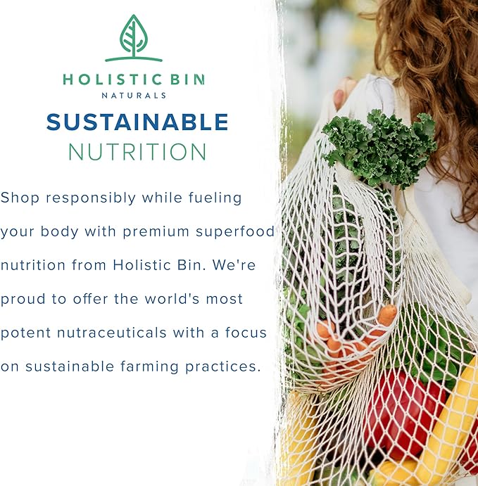 - SUSTAINABLE NUTRITION: Shop responsibly while fueling your body with premium superfood nutrition from Holistic Bin. We're proud to offer the world's most potent nutraceuticals with a focus on sustainable farming practices.