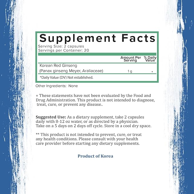- PURE GINSENG ROOT POWDER : Our Red Korean Ginseng Capsules are made with pure ginseng powder that is harvested from Korean panax ginseng roots. This incredible superfood powder is free from fillers and additives and is rich in bioactive compounds that deliver powerful health benefits.