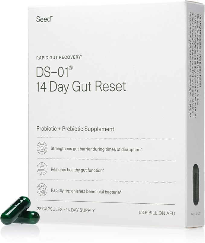 - Rapid Gut Relief: Seed 14 Day Gut Reset is clinically validated to restore healthy gut function within 14 days. 14 Day Gut Reset uses Seed's proprietary DS-01 formulation, including 24 clinically and scientifically studied probiotic strains and a patented, plant-based prebiotic outer capsule.