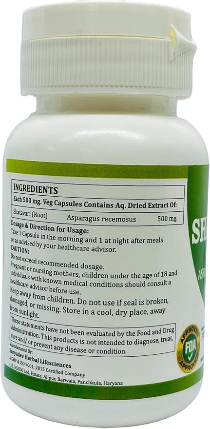 - Made from Pure Shatavari Extract, each capsule contains 500 mg of Asparagus racemosus, a plant known for its traditional Ayurvedic benefits.