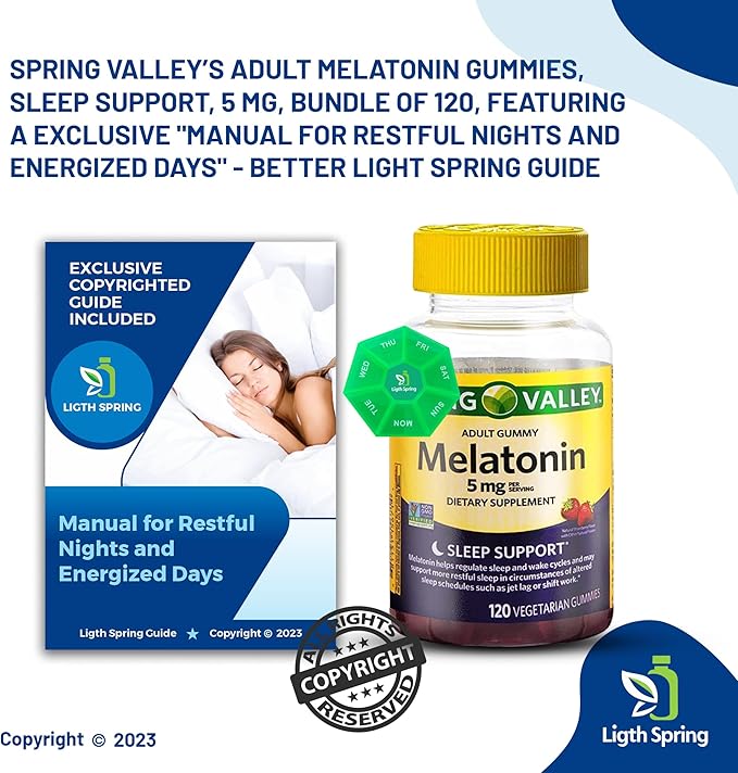 Melatonin 5Mg, 120 Gummies, Sleep Support (2 Pack) with Bundle Exclusive Better Ligth&Spring Guide + Weekly Pill Organizer (4 Items)