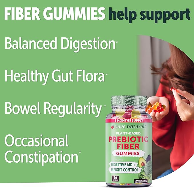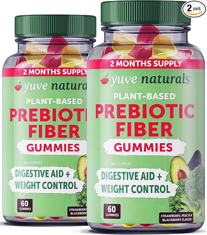 Yuve Fiber Gummies - Delicious - 3g Soluble Fiber Gummy Supplement - Supports Digestive Health & Regularity - Vegan & Gluten-Free Fiber Gummies for Adults & Women - Non-GMO & Low Sugar - 60Ct (2 Pack)