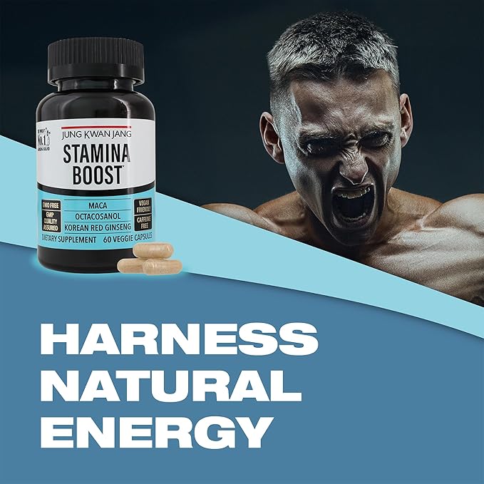 JungKwanJang Men's Stamina Boost with Korean Red Ginseng, Maca, and Octacosanol for Men's Health and Energy Supplement, 60 Capsules