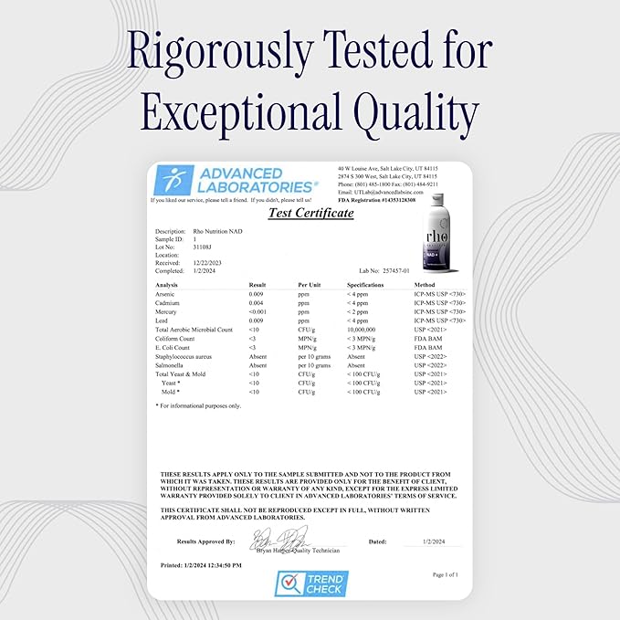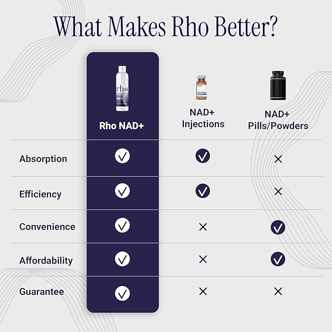 - CONVENIENT LIQUID FORM: Formulated in a liquid form with a light and fresh lemon-essence flavor, Rho Nutrition Liposomal NAD+ is vegan, sugar free, Keto, non-GMO, gluten, dairy & soy-free. Manufactured in the USA in a cGMP facility and third-party tested.