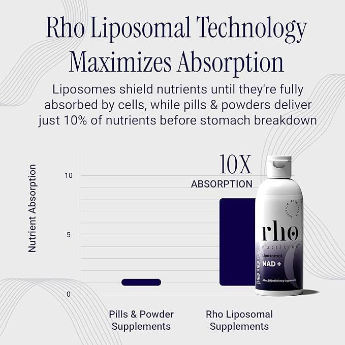 - MAXIMUM ABSORPTION LIPOSOMAL TECHNOLOGY: Our unique Liposomal technology encapsulates NAD+ in tiny pouches similar to cell membranes, which increases bioavailability. Liposomal encapsulation increases NAD+ absorption compared to other NAD+ supplements in traditional capsule, pill, and powder forms and avoids costly and painful injections.