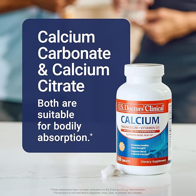 U.S. Doctors' Clinical 1200mg Calcium Citrate & Carbonate Complex with Magnesium & Vitamin D3 - Calcium Supplement for Bone Strength, Muscles & Nerves - Vegan, Non-GMO - 120 Tablets - 2-Month Supply