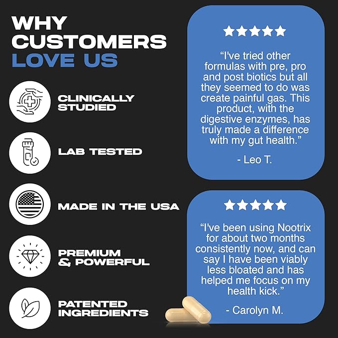 - Enhance Digestion and Nutrient Absorption: Nootrix Gut Protect and Restore combines 500mg of prebiotics, 20 billion CFUs of probiotics, and 550mg of Corebiome postbiotics to optimize digestion and improve nutrient uptake for overall wellness.