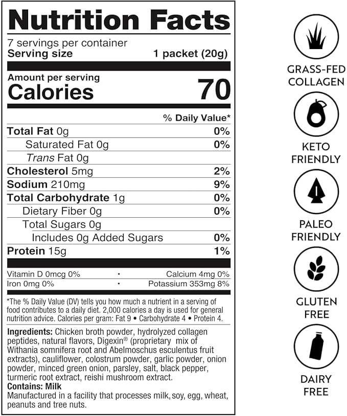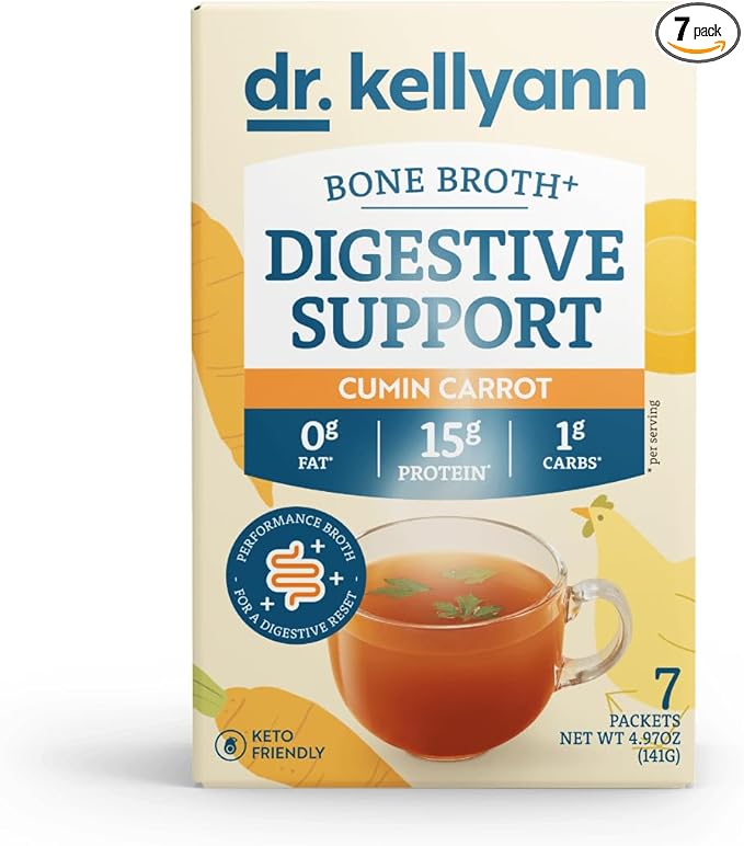 Dr. Kellyann Bone Broth + Digestive Support Collagen Powder Packets (7 Servings, 1 Box), 16g Protein/Serving, 100% Grass-Fed Hydrolyzed Collagen Powder, Keto & Paleo Friendly - Cumin Carrot