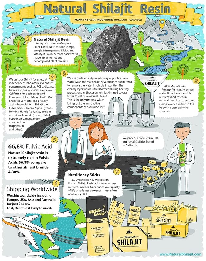 - RESPONSIBLY SOURCED: All of our Shilajit is 100% natural, wild-crafted and Pure, authentic shilajit resin. We work directly with our long-time trusted supplier in The Altai Mountains so we can be extra confident in the product's authenticity.