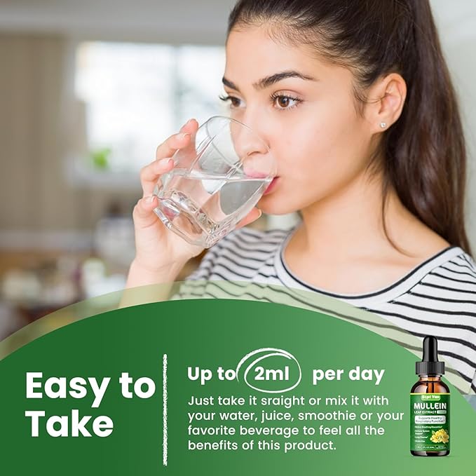 - Extra Strength and Easy to Take - Taking mullein in liquid form is more effective than taking mullein gummies, capsules or powder. It rapidly improves digestion, immunity, bronchial cleansing and overall well-being. Just take 2ml of mullein drops directly each day, or mix it into any water or drinks to promote respiratory and immunity health. Feel the soothing support that enhances respiration function and promotes clear, comfortable breathing