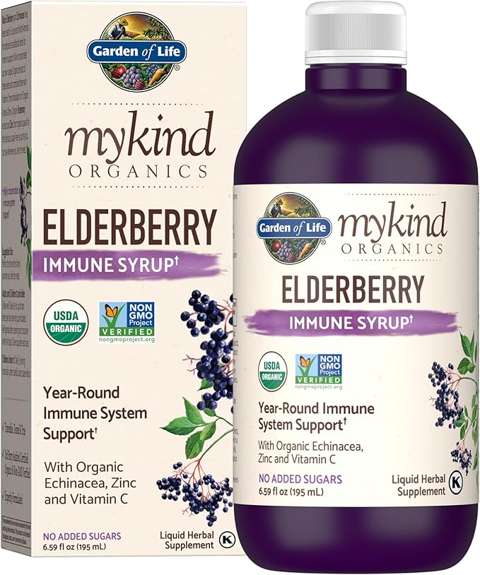 Garden of Life Organics Plant-Based Elderberry Immune Syrup 6.59 fl oz & Zinc Supplements 30mg High Potency Raw Zinc and Vitamin C Multimineral Supplement