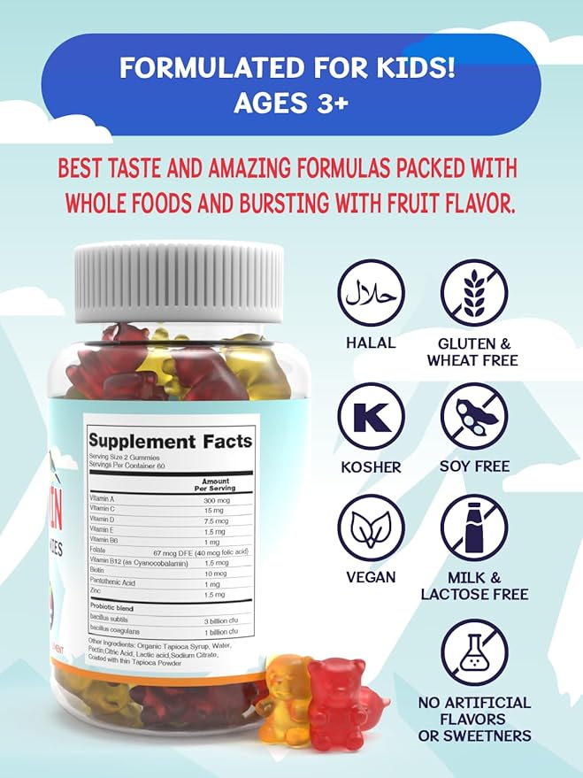- Essential Nutrients for Healthy Growth: Ensure your children receive all the essential vitamins and minerals they need for healthy growth and development with our kids' multivitamin with probiotics.