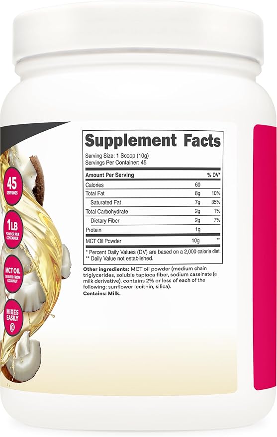 - 45 Servings Per Bottle: With 45 servings in each 1 lb bottle, this MCT Oil Powder provides a reliable and lasting source of clean energy, supporting your workouts and active lifestyle.