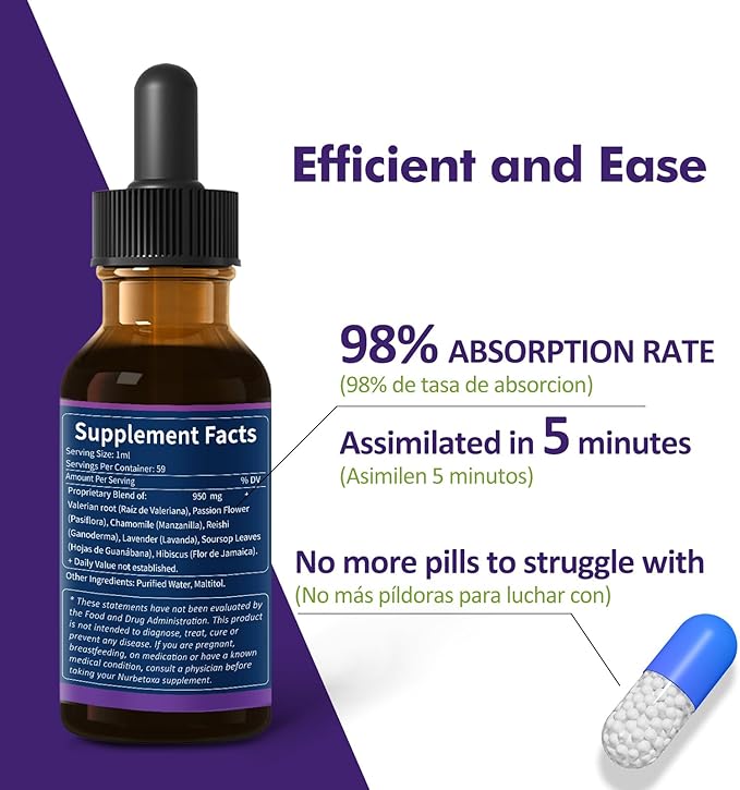 - FÓRMULA TODO NATURAL: Nerbetoxa tiene amplia experiencia en suplementos de hierbas. Nuestro equipo global de herbolarios cree en el potencial terapéutico de las hierbas. En la Europa medieval, la valeriana para dormir y ansiedad. Nuestra gotas fuertes para dormir está dominada por la raíz de valeriana y la Pasiflora, complementpor otros seis potentes botánicos. Esta poderosa mezcla ayuda a promover la relajación y el sueño natural.