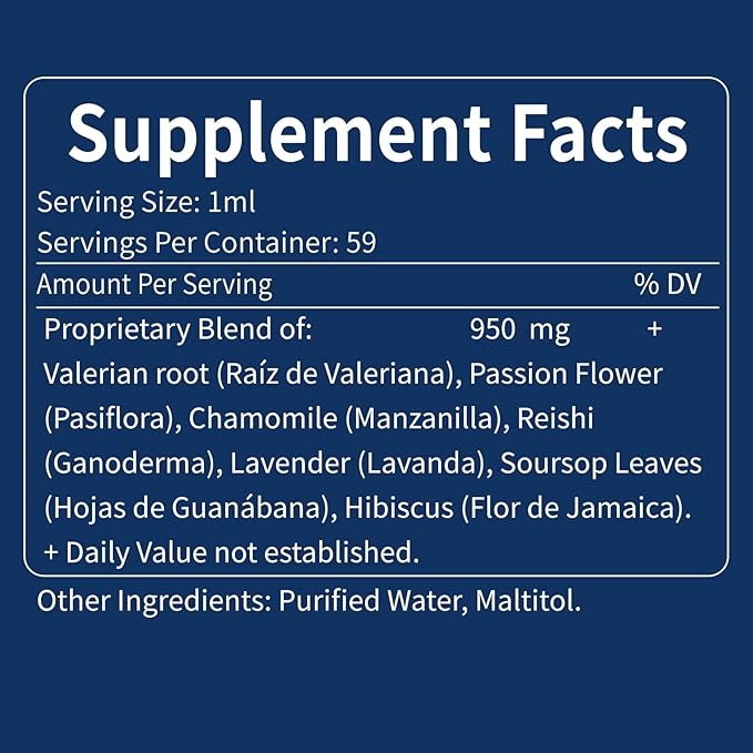 - DORMIR RÁPIDO Y BIEN: Este líquido para dormir no contiene melatonina. En su lugar, hemos incluido otros ingredientes como la Raíz de Valeriana, que induce el sueño al actuar sobre los receptores de GABA. La Manzanilla, la Lavanda y las hojas de Guanábana son relajantes naturales que mejoran la calidad del sueño al facilitar conciliar el sueño, resultando en un sueño más reparador. Nuestra fórmula única es ideal para aliviar problemas ocasionales de sueño sin crear hábito.
