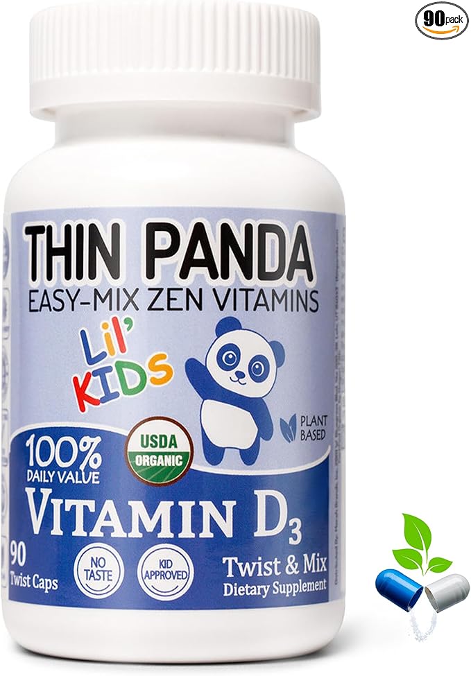 Lil' Kids Organic Vitamin D3 Supplement | 100% Of Your RDA | For Strong Bones & Healthy Immunity | Unique Twist & Mix Design | GMO Gluten Vegan & Taste Free | For Toddlers Ages 3 & Under | 90 Servings