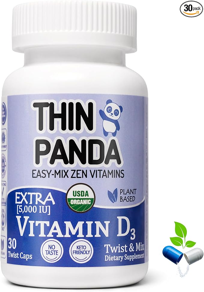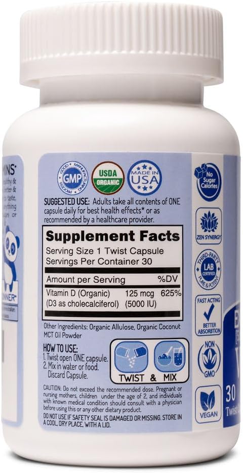 Extra Strength Organic Vitamin D3 5000 IU Supplement | for Strong Bones & Healthy Immunity | Unique Twist & Mix Design | GMO Gluten Vegan & Taste Free | for Adults Only | 30 Servings