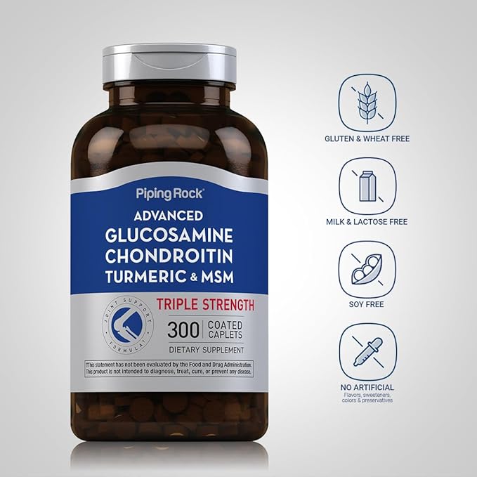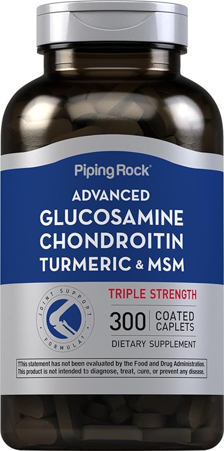 Piping Rock Glucosamine Chondroitin Turmeric MSM | 300 Caplets | Triple Strength | Advanced Supplement | Non-GMO & Gluten Free