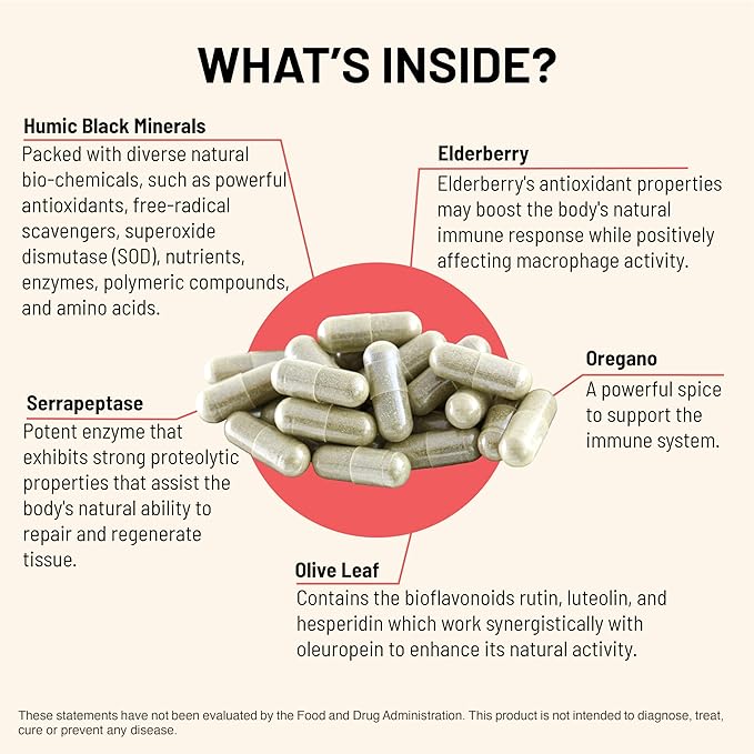 - IMMUNE SUPPORT: This distinctive supplement includes humic black minerals, such as humic acid and fulvic acid, which contain vital nutrients and supercharged antioxidants for your body's natural defense system.