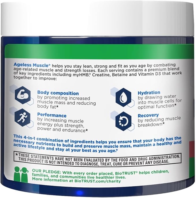 - MUSCLE BUILDER FOR MEN & WOMEN. Advanced benefits in one premium powder: Whether you’re combating age-related muscle mass decline or following a GLP-1 prescription plan, Ageless Muscle’s creatine monohydrate and HMB formula helps preserve lean muscle and protect against natural muscle loss that comes with aging.