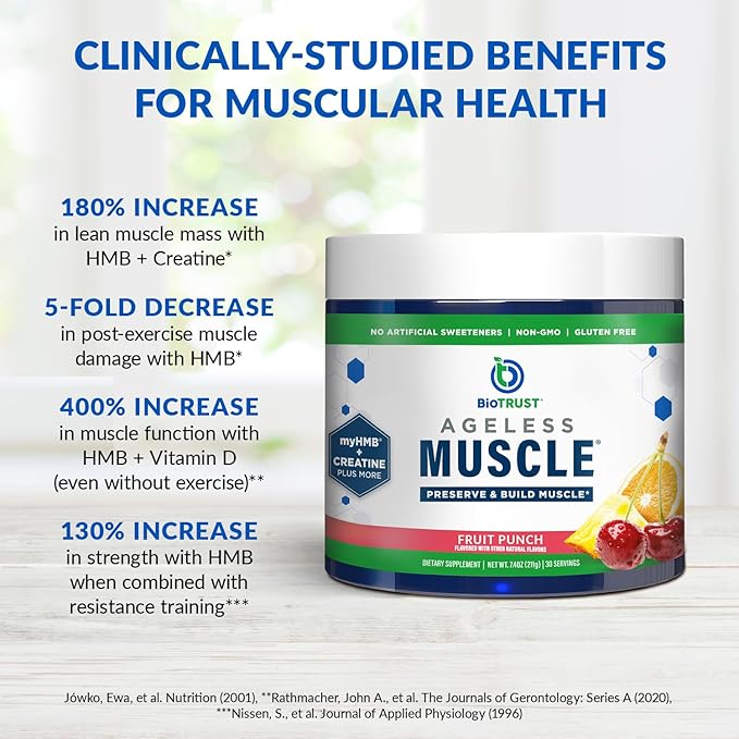 BioTrust Ageless Muscle Builder - Creatine HMB Powder with Vitamin D3 & Betaine - Build & Preserve Naturally Declining Muscle Mass & Strength - Fruit Punch, 60 Servings