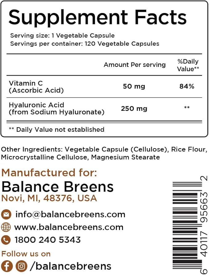 - π§π₯π¨π¦π§ππ π€π¨ππππ§π¬: Each batch of Hyaluronic Acid Capsules is tested in a 3rd Party ISO certified lab. All our HA supplements are Made in the USA with trusted ingredients. We stand behind our products with a 100% satisfaction guarantee.