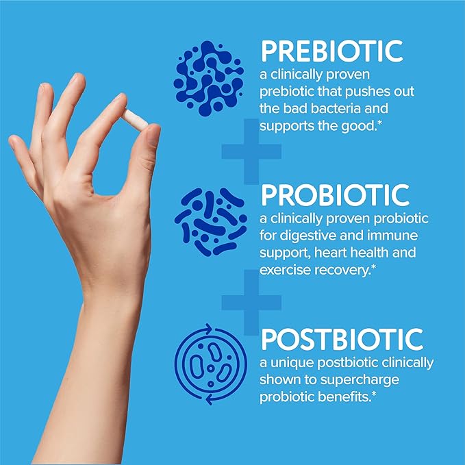 - CLINICALLY STUDIED STRAINS: Complete biotic formula with PREBIOTIC + PROBIOTIC + POSTBIOTIC strains clinically studied and clinically shown to naturally help promote gut health and boost your immune system. Formulated with a unique non-fiber prebiotic that doesn't cause any gas.