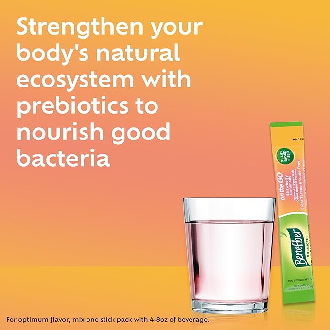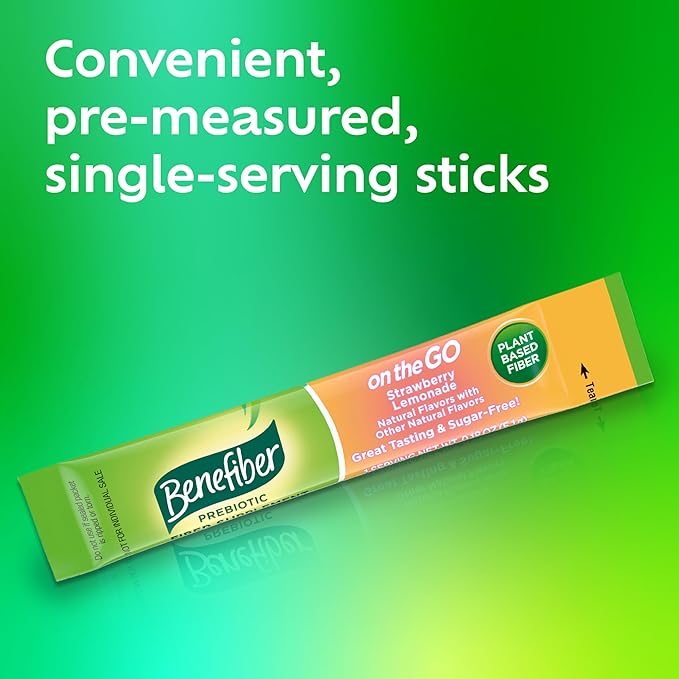 - 36 count On the go Stick Packs of Benefiber Lightly Flavored Strawberry Lemonade Prebiotic Supplement Powder for Digestive Health – Enjoy your fiber anywhere you go