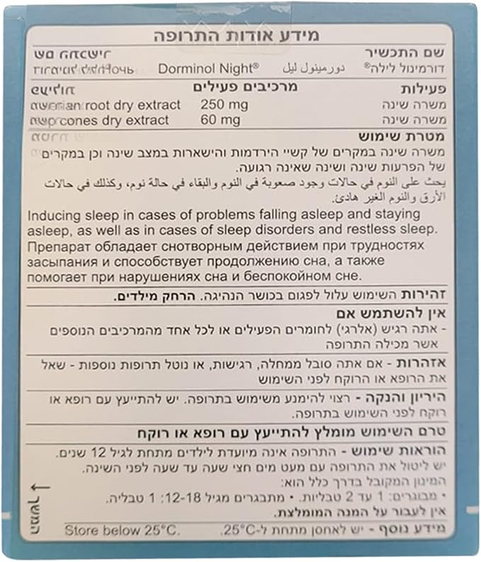 - Dorminol Night tablets inducing sleep in cases of problems falling asleep and staying asleep, as well as in cases of sleep disorders and restless sleep.