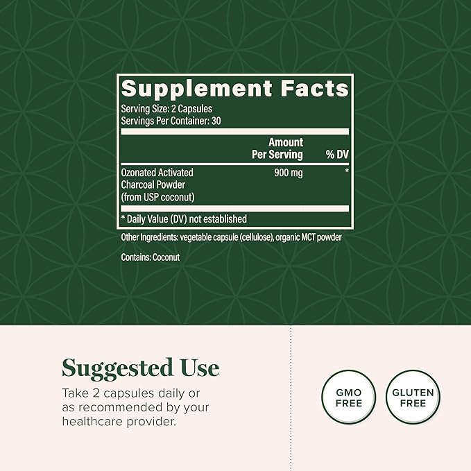 Global Healing Center - Ozonated Activated Charcoal Powder - Advanced Digestive Detox That Adsorbs Internal Unwanted Compounds - Helps Relieve Occasional Gas Discomfort - 60 Activated Charcoal Pills