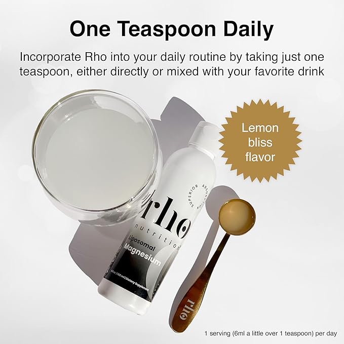 - CONVENIENT LIQUID FORM: Easily integrate Rho Liposomal Magnesium into your daily routine with 1 serving (6ml a little over 1 teaspoon) per day. Enjoy the light lemon flavor by taking it straight or mixing it into cold water, juice, smoothie, or shake. This liquid formulation offers 30 servings per bottle. It’s sugar-free, Keto, non-GMO, gluten, dairy & soy-free, containing no fillers, binders, or artificial coloring. Manufactured in the USA in a GMP facility and third-party tested.