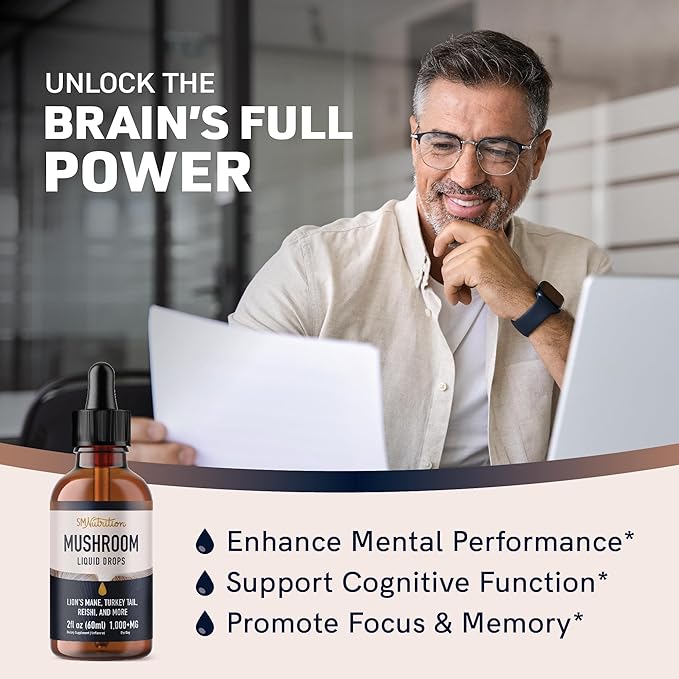 Mushrooms Liquid Drops Complex | Lions Mane Supplement with Turkey Tail Mushroom, Reishi, Shiitake & More | Support Cognitive Function, Memory & Focus | Non-GMO, Soy-Free | 2 Fl Oz, 60 Servings